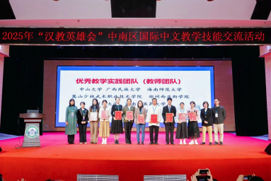 (文/孙珠珊 图/孙珠珊)2025年10月25日,由教育部中外语言合作交流中心、全国国际中文教育专业学位研究生教育指导委员会、全国高校汉语国际教育本科专业负责人联席会秘书处联合主办,武汉大学承办的“汉教英雄会”国际中文教学技能交流活动中南区线下活动圆满举行,我校教学团队荣获“优秀教学实践团队”荣誉称号。